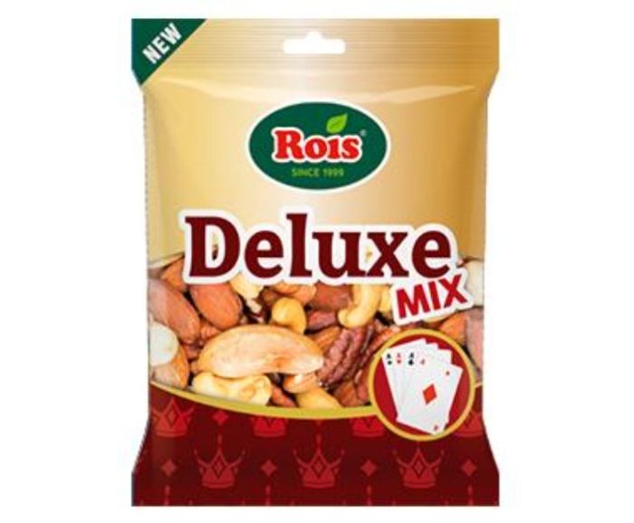 Rois Mix Deluxe: печени бадеми, кашу, бланширани фъстъци, бразилски орех, пекан, сол, модифицирано нишесте, пшенично брашно, соя, млeчен протеин, ароматизанти, захар, глюкоза, малтодекстрин, противослепващи агенти: трикалциев фосфат, силициев диоксид; емулгатор: натриеви фосфати, овкусител: мононатриев глутамат, антиоксидант: алфа- токоферол, регулатор на киселинността: лимонена киселина, оцветител: паприка екстракт.