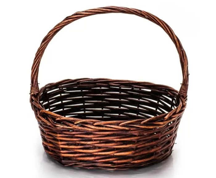 • Кафява Плетена Кошница Обла, Размер: Дължина - 30 см., Ширина - 26 см., Височина - 12,5 см. ;