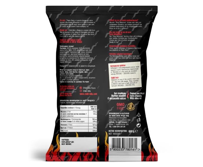 Произведен в България от българска царевица и люти чушки отгледани във фермите на Chilli Hills.