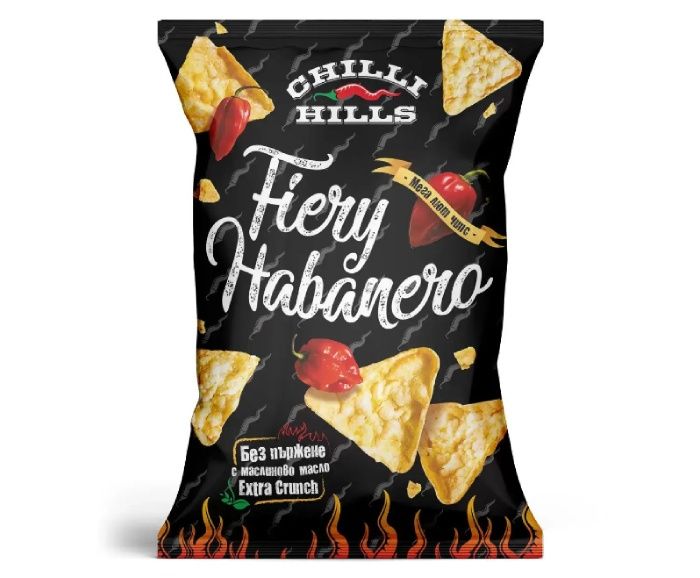 Царевичен тортила чипс от царевица с вкус на паприка и люти чушки Хабанеро, произведен по технология на експандиране, без пържене и без добавена мазнина. “Fiery Habanero” е огнено лют чипс, който ще предизвика сетивата, ще отвори апетита и ще промени представите ти за следобедния снакс.