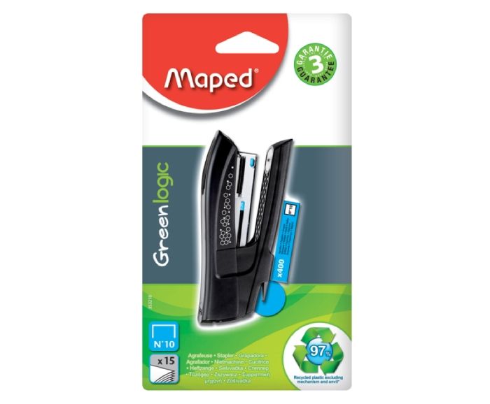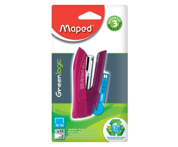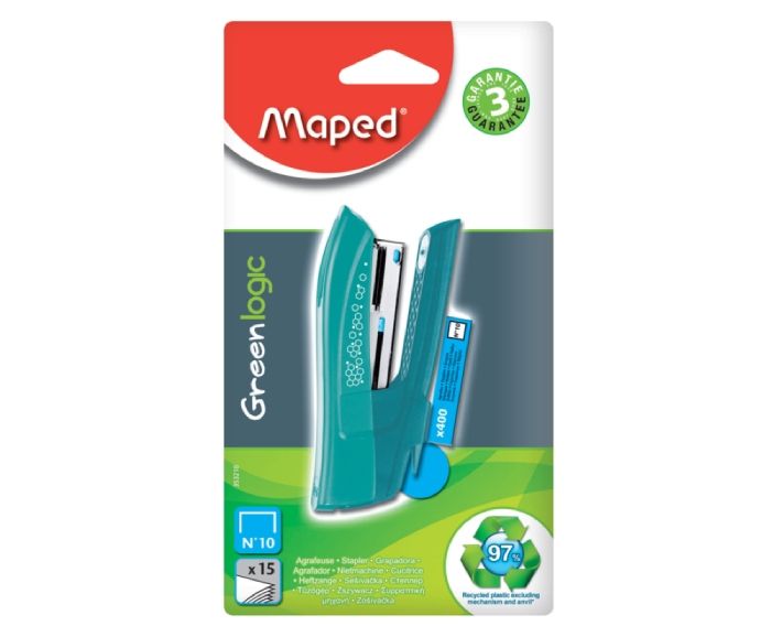 Телбод Maped Greenlogic Color Mini е с ергономичен дизайн, изработен от 95% рециклирани материали. Дълбочина на защипване 28 мм и капацитет на зареждане: 41 бр. телчета 24/6 или 58 бр. телчета 26/6. Подходящ за защипване до 15 листа с подарък от 400 телчета в опаковката.