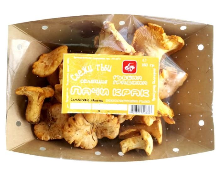 Свежите диворастящи гъби Пачи крак са събирани преди вдигане на росата, характеризират се с жълт до жълто-оранжев цвят и страхотен вкус. Подходяща за приготвяне с паста, като гарнитура или задушена в масло.